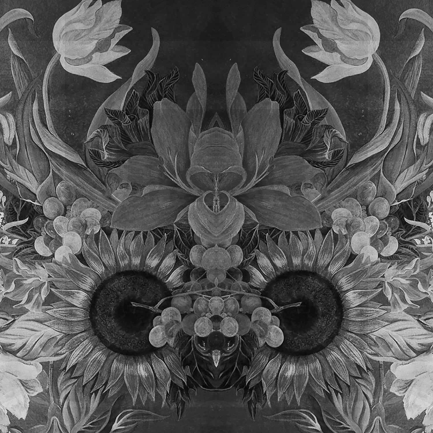 The Jill pattern came from a pair of murals I painted with two other amazing artists, Holly Williams and Roger Preston. The companion piece to this became the pattern Emma. The sunflower focal piece was painted by Holly. I snatched her out of the graduating class at Otis that year. These were two very large flower arrangements done in trompe l'oeil stone urns, which were painted by Roger. Holly and I pulled a lot of our reference from the French botanical artist, Pierre-Joseph Redouté. The original pieces were multi-colored but I changed direction on the digital design. I wanted the textiles to have that 40s era quality. It's often my touchstone when working on florals. The piece is named for one of my very first models from the Studio2eleven Textile Company. This is one of the archive textiles.